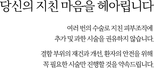 - ´õ ÀÌ»óÀÇ Ãß°¡ ¼ö¼úÀÌ ¾øµµ·Ï ¿Ïº®ÇÑ °á°ú¸¦ ¿øÇϽô ºÐ